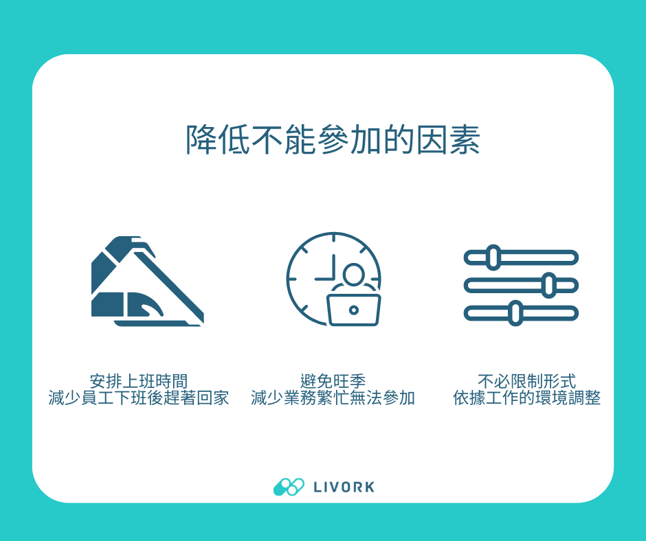 降低員工不能參加的因素,增加參加的誘因